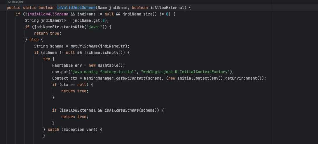 The second approach is to try to bypass the JNDIUtils.isValidJndiScheme function in the patch.