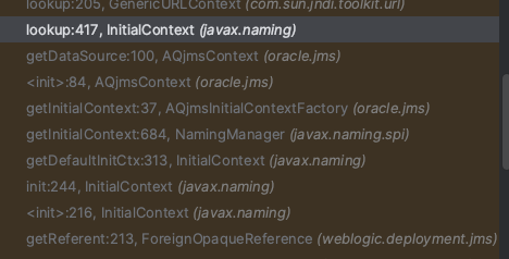 Because other envs can still be controlled, it may be possible to create possibilities when specifying java.naming.factory.initial for initialization. Fortunately, WLS provides a lot of InitialContextFactory, and there is exactly one AQjmsInitialContextFactory that needs to obtain the remote DataSource through JNDI during initialization.